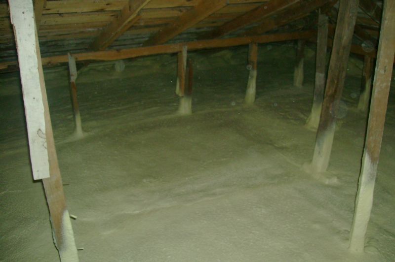 Poliüretan Sprey (poliüretan köpük ) malzemesinin düşük bir kalınlıkla son derece düşük ısı iletkenliği ve yüksek ısı yalıtım performansı, hem zaman hem de para olarak maliyetli olan çatı alanlarının ısı yalıtımı uygulamalarına olanak sağlamaktadır. Püskürtme poliüretan köpük, zahmetli kesme ve monte etme işlemlerine gerek olmadan ahşap çatı kirişlerinin arasına veya beton zemin üzerine yüksek basınç altında özel sprey tabancası ile püskürtülür. Böylece, normal yalıtım malzemeleri döşendiği zaman meydana gelen enerjiyi israf eden ek yerleri olmadan yüksek ısı yalıtımı ve hava geçirmez bir poliüretan köpük yalıtım tabakası elde edilir.
